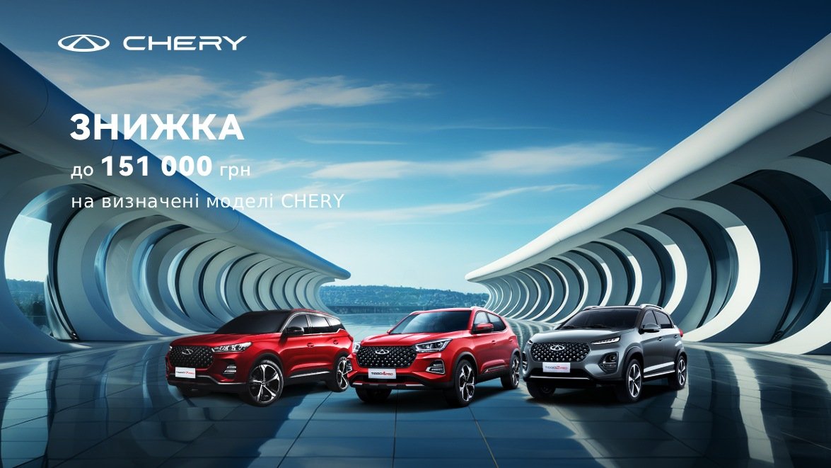 ТОВ «СІ ЕЙ АВТОМОТІВ» додатково знижує ціни на визначені моделі СHERY. Це приємна нагода купити новий, комфортний та економний кросовер за вигіднішою ціною в офіційних дилерів СHERY в Україні з урахуванням знижки до 151 000 грн1.